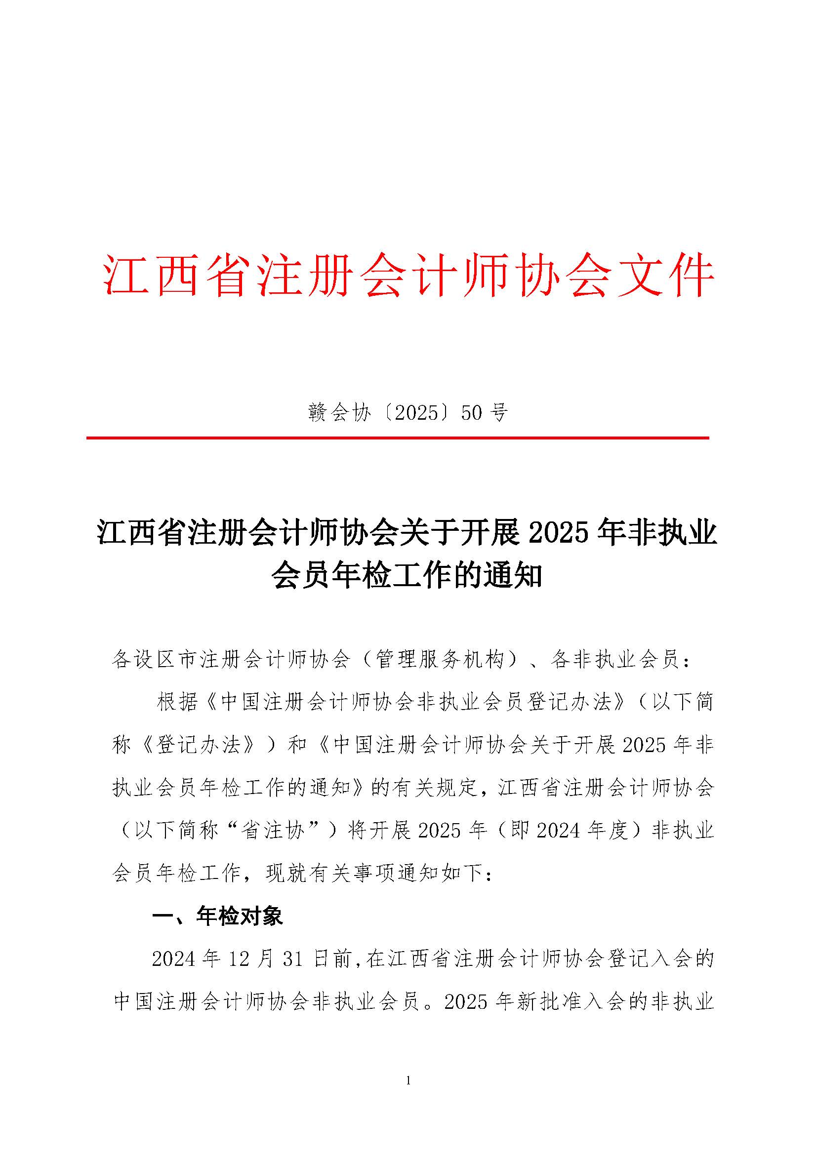 江西省注册会计师协会关于开展2025年非执业会员年检工作的通知