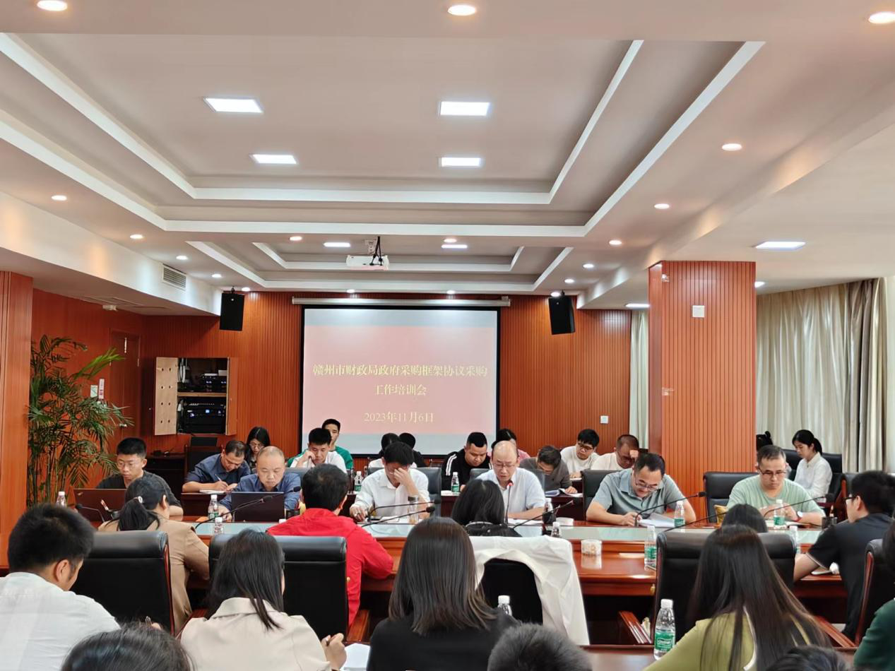 为进一步贯彻落实《财政部政府采购框架框架协议采购方式管理暂行办法》,持续优化政府采购营商环境,推动框架协议全流程电子化改革,2023年11月6日,赣州市财政局召开全市2023年政府采购框架协议采购工作培训会,市公共资源交易中心、社会代理机构代表、市直部分预算单位代表、博思数采科技股份有限公司、江苏新点软件公司、各县(市、区)财政局相关负责人员等60余人参加会议。