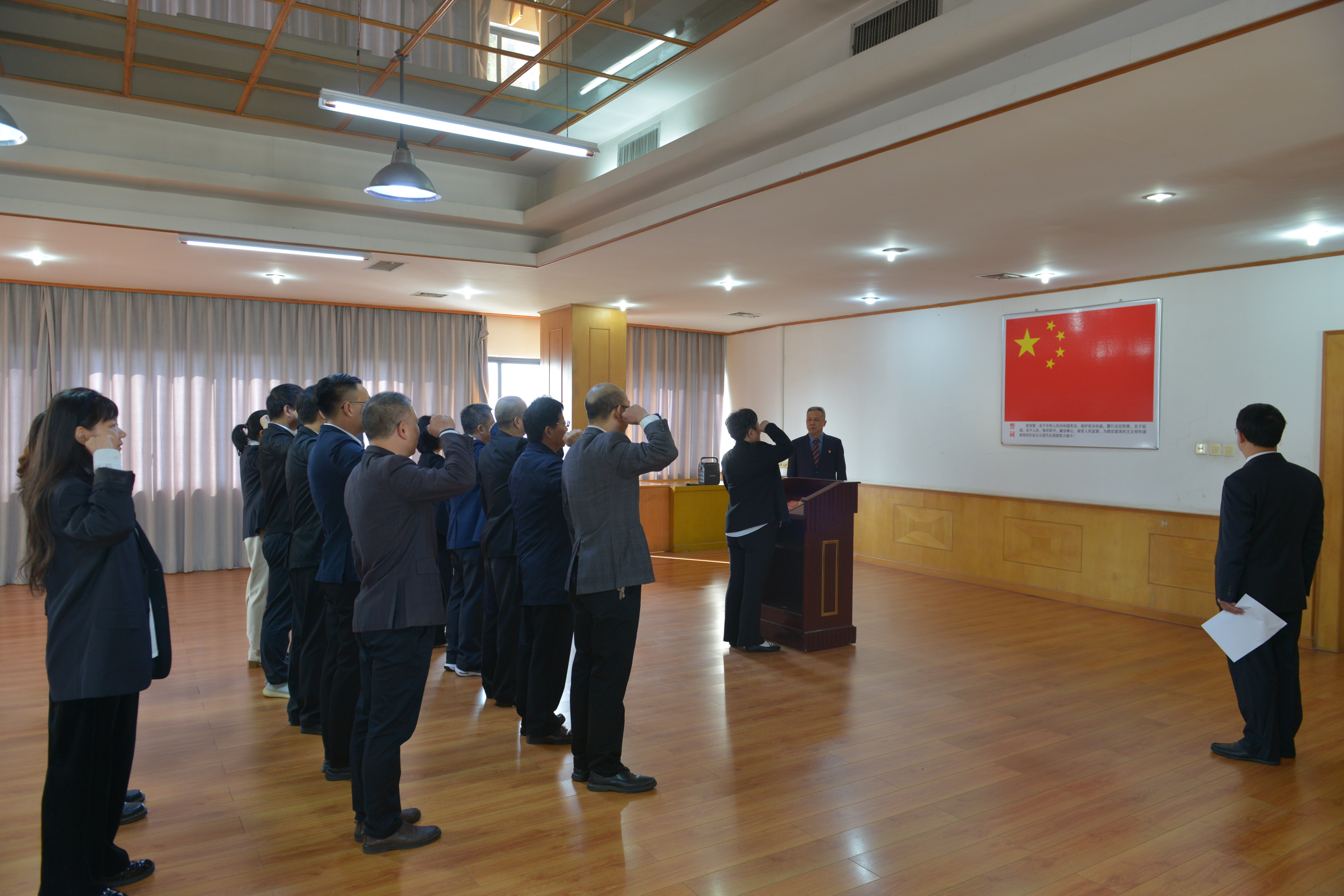 2024年12月4日,是第11个国家宪法日,为进一步激励财政干部坚决扛起宪法赋予的职责,做宪法的忠实崇尚者、自觉遵守者、坚定捍卫者,市财政局组织30余名新任职人员举行宪法宣誓仪式,局党组书记、局长温江涛监誓。党组成员、副局长刁鸿锦主持宣誓仪式,三级调研员邓文英领誓。